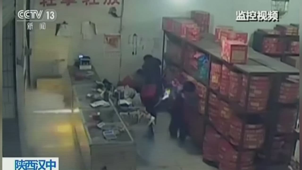 Un hombre ebrio prende un cohete en una tienda de petardos y todo a su alrededor explota