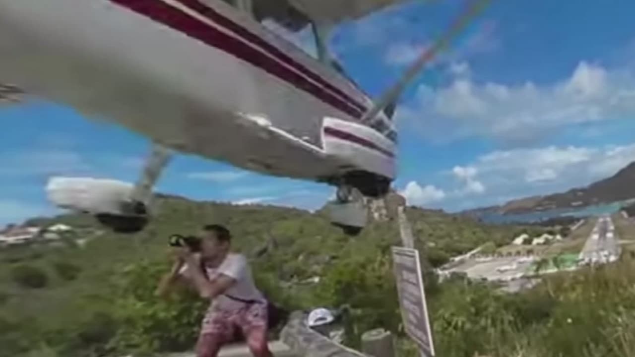 Un hombre quería captar la imagen perfecta del aterrizaje de un avión se acercó demasiado a la pista y casi es decapitado por la aeronave.