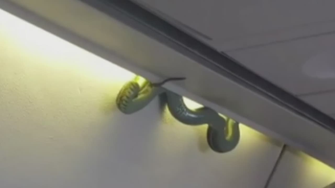 Se trata de una culebra que apareció dentro de un avión asustando a todos los pasajeros, quienes incrédulos tomaban fotos y videos del animal. El reptil permaneció todo el trayecto dentro del avión sin atacar a nadie y fue capturado al llegar al destino.