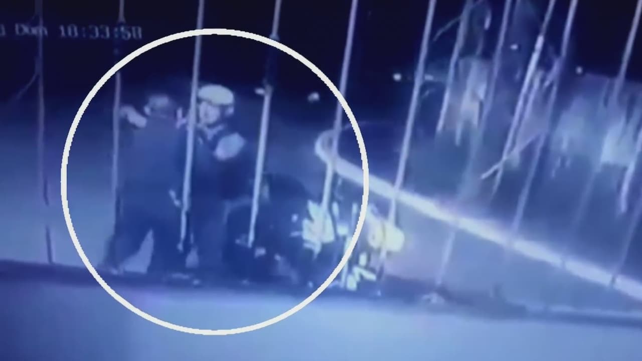 Una cámara de seguridad captó como, tras abatir a los oficiales, el delincuente de 18 años trató de escapara de la escena a bordo de una motocicleta.