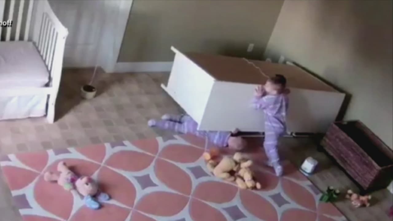 Los hermanos jugaban en su habitación cuando un armario de cajones se vino abajo y aplastó a uno de los niños. Después de unos minutos sin saber qué hacer y al ver que su hermano no podía liberarse, el otro niño comenzó a empujar el mueble y salvó a su hermano. Las imágenes son de la cámara de seguridad de la habitación y la madre de los pequeños decidió compartirlas para advertir sobre los peligros de este tipo de mobiliario.