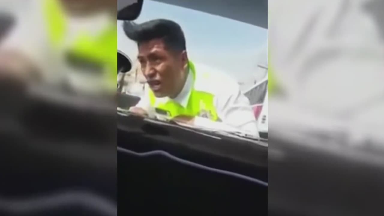 Oficial de tránsito se aferra a auto en movimiento que intentó atropellarlo para evitar infracción