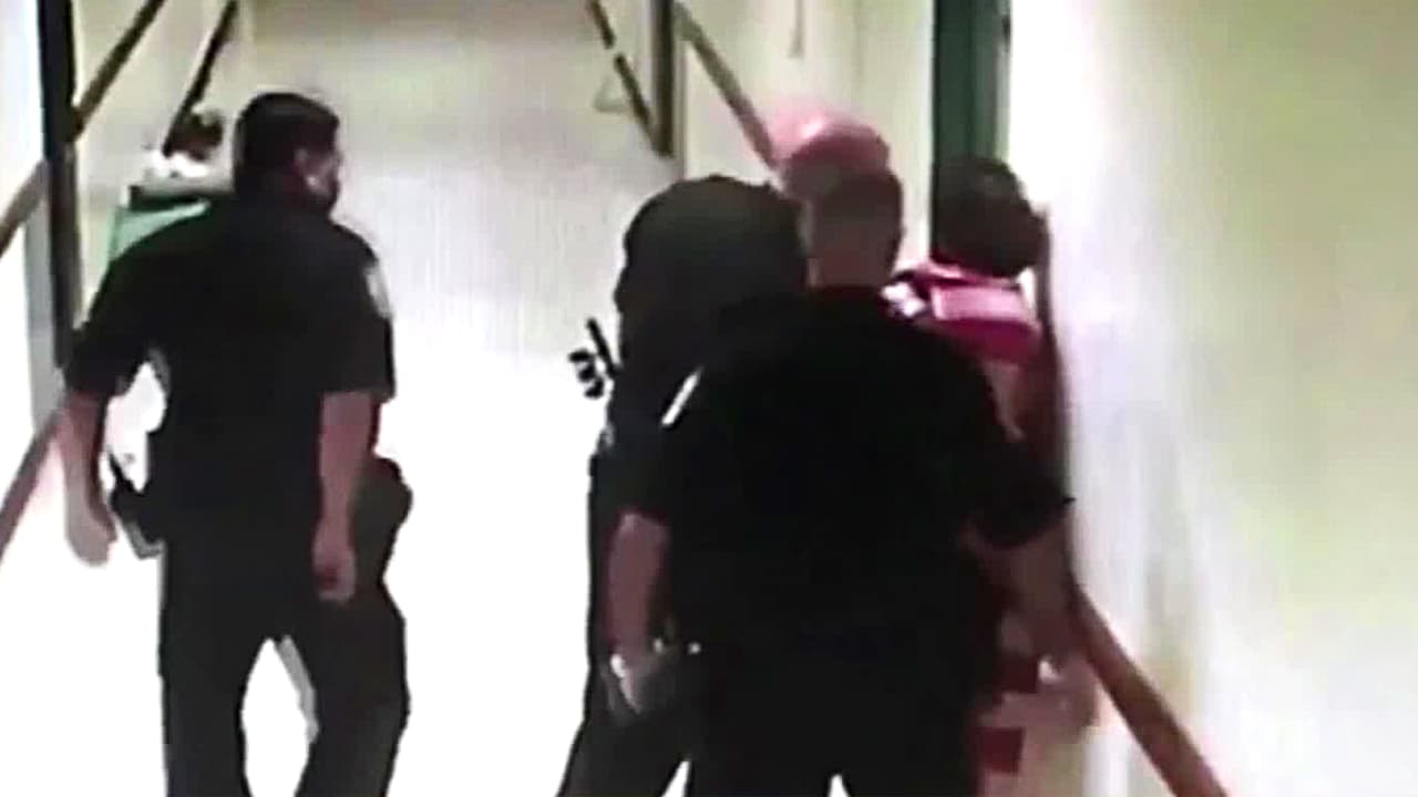 Las imágenes fueron captadas en un centro de detención de Florida. El preso, además de perder algunos dientes, sufrió una fractura en la nariz, según los informes, por lo que el uniformado fue despedido. Al parecer, habían encontrado naranjas en su celda.