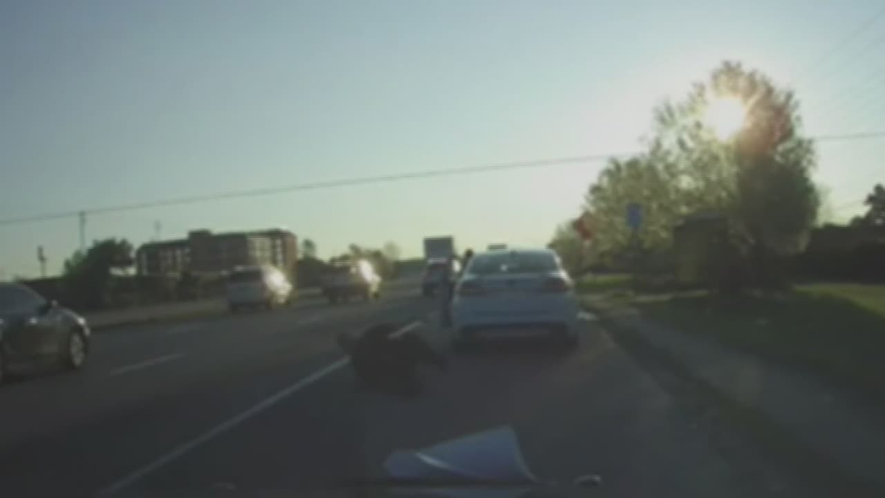 El agente sintió un fuerte olor a marihuana en un vehículo que había detenido por una violación de tránsito. Al tratar de inspeccionar el auto, el conductor lo puso en marcha y condujo a toda velocidad con el uniformado dentro.