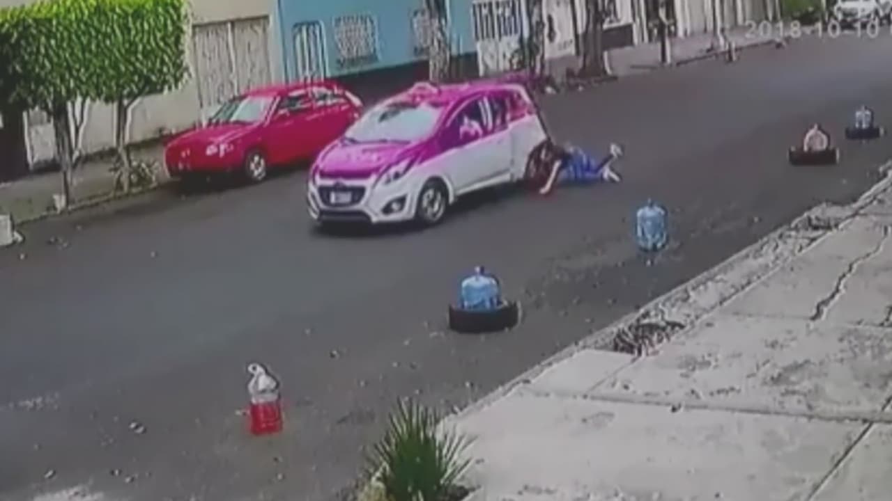 Un taxista arrastra por el pavimento a una joven a la que le había chocado el auto