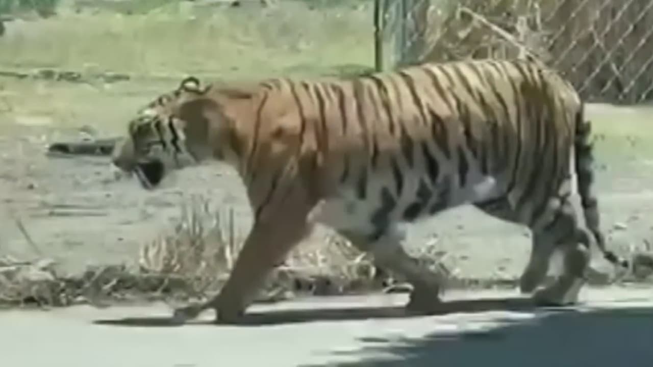 Un tigre camina en plena calle frente a la mirada atónita de conductores y transeúntes