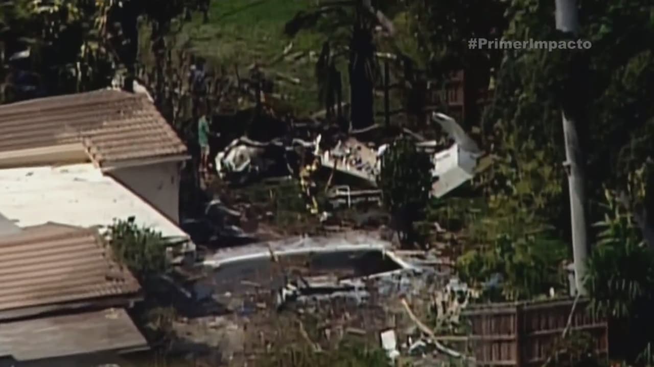 Hay al menos tres personas lesionadas en el accidente donde una aeronave se estrelló contra una vivienda y estalló en llamas, causando severos daños en la estructura.