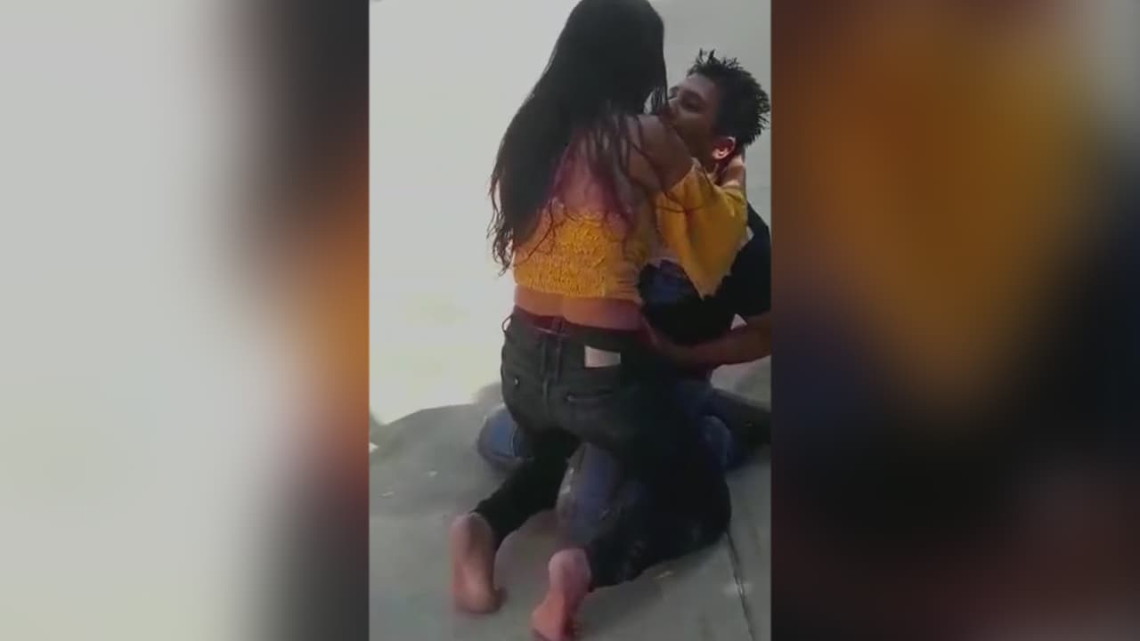Una mujer apuñala a su pareja y segundos después le pide perdón entre besos y abrazos