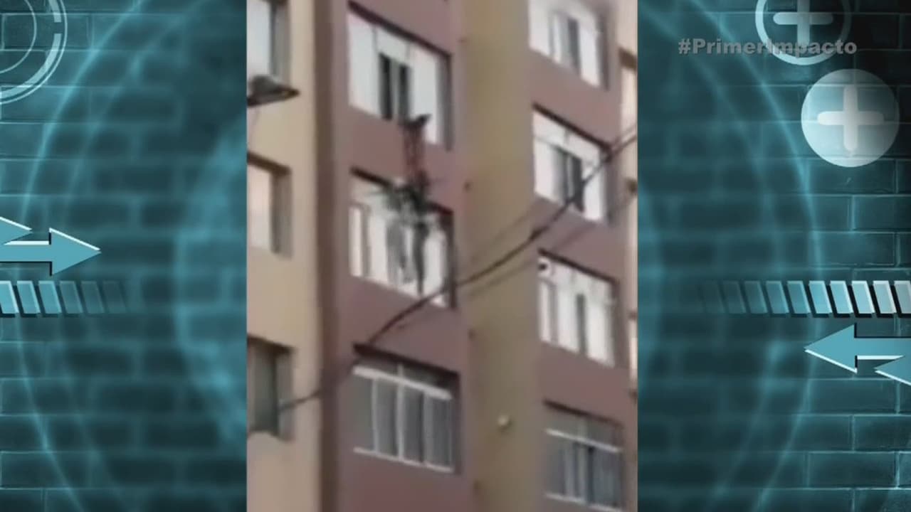 Una mujer se resbala de las manos de su marido que intentaba, supuestamente, salvarla de caer al vacío.