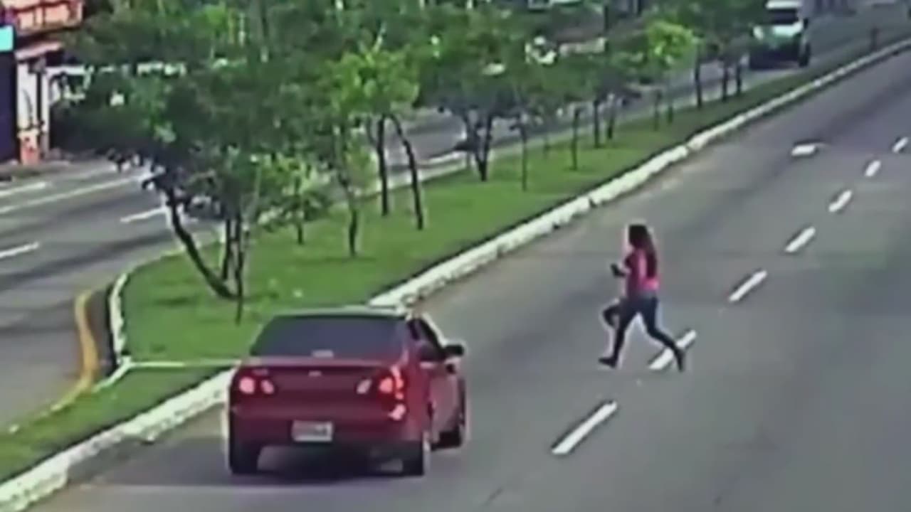 Una mujer salió disparada por el aire cuando un vehículo la arrolló en plena calle de Guatemala