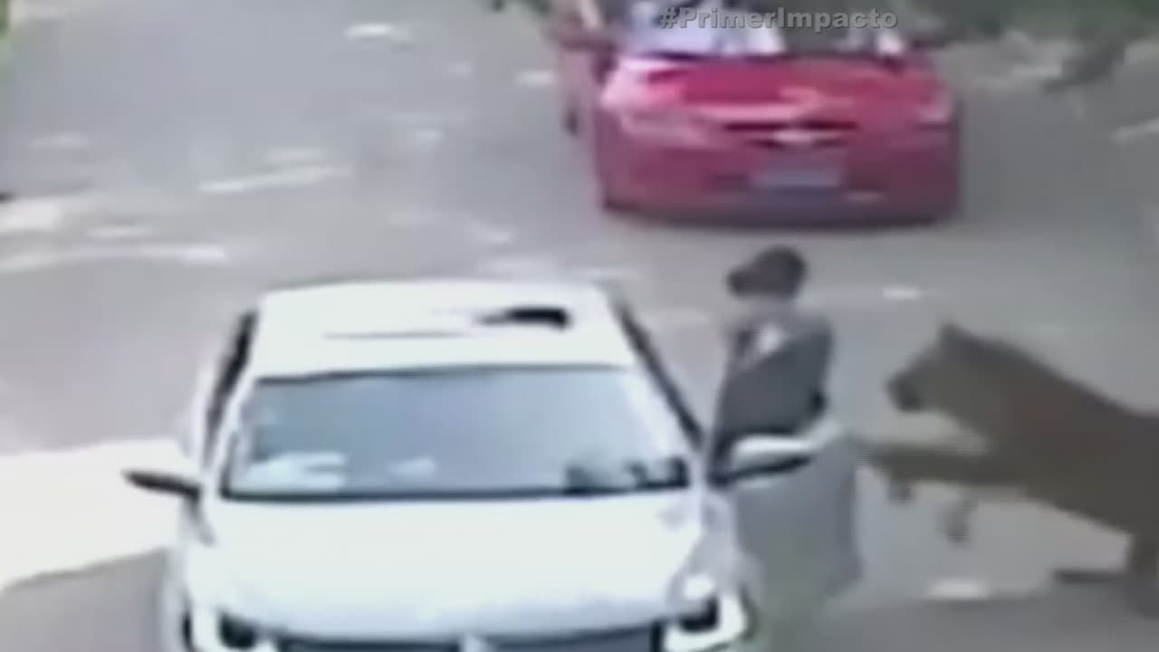 Una mujer se baja de un auto y termina en las fauces de un tigre