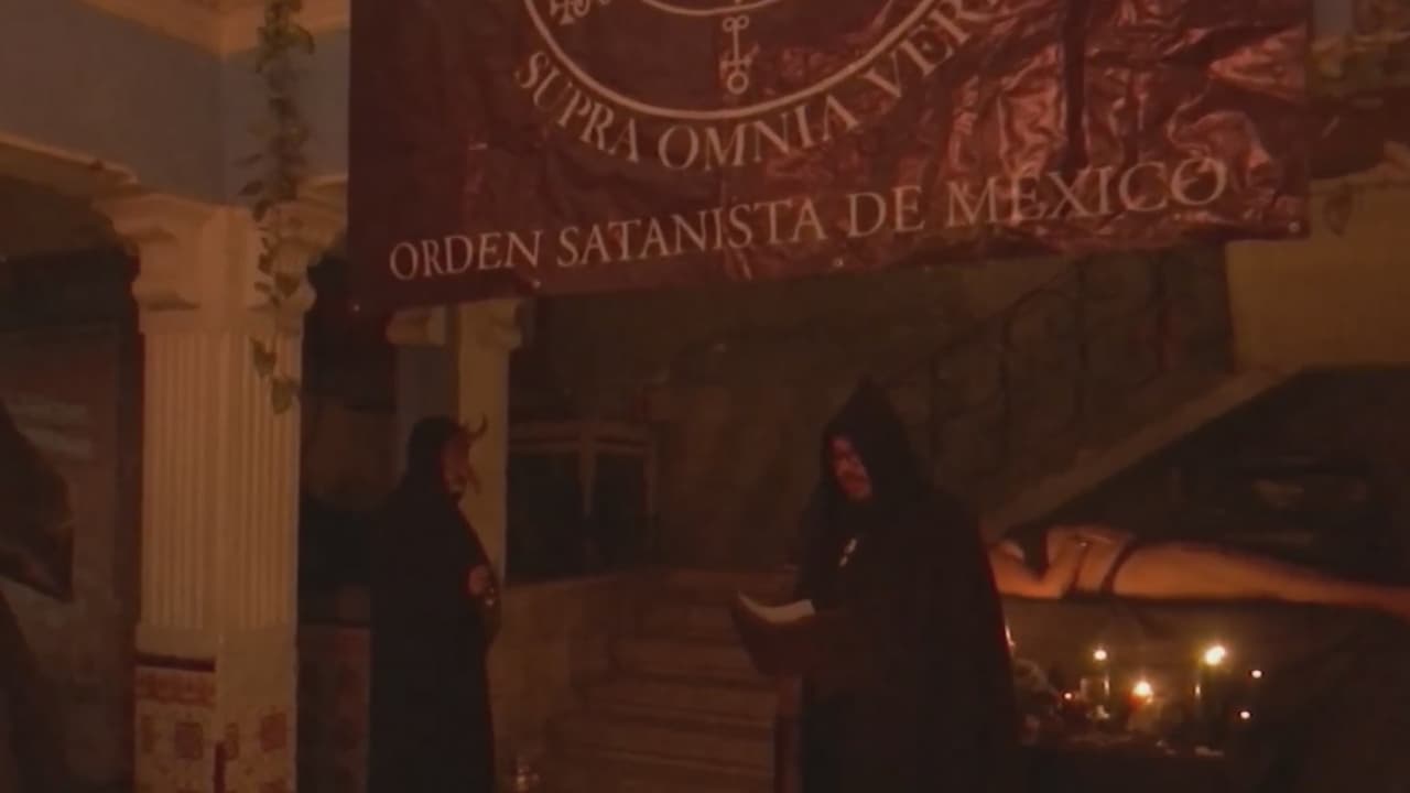 Una mujer semidesnuda y símbolos: uno de los rituales satánicos en México