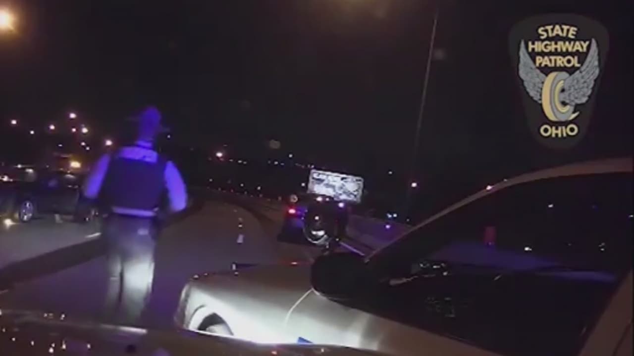 Un oficial se detuvo al lado de una carretera en Ohio para auxiliar a un conductor, cuando ocurrió el accidente que quedó grabado en cámara.