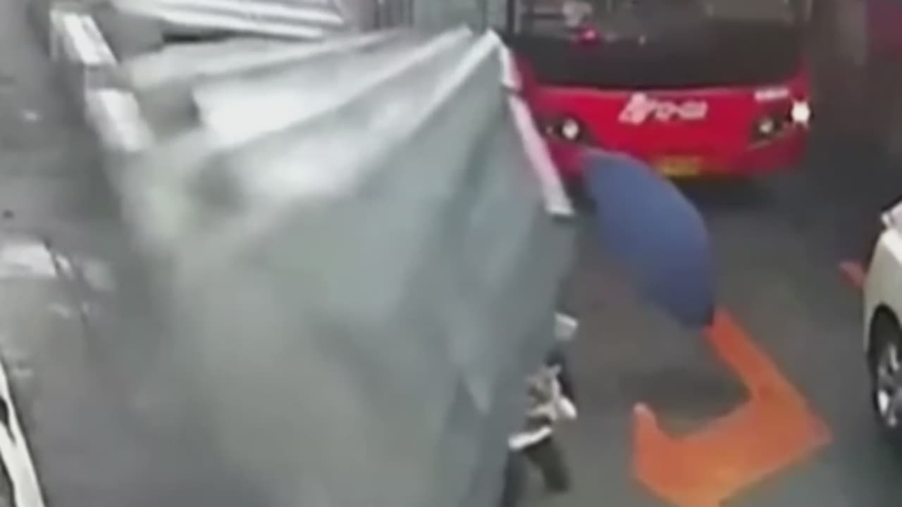 El aterrador accidente tuvo lugar en una concurrida avenida de China, y todo fue a causa de una potente ráfaga de viento que echó abajo la estructura de metal.