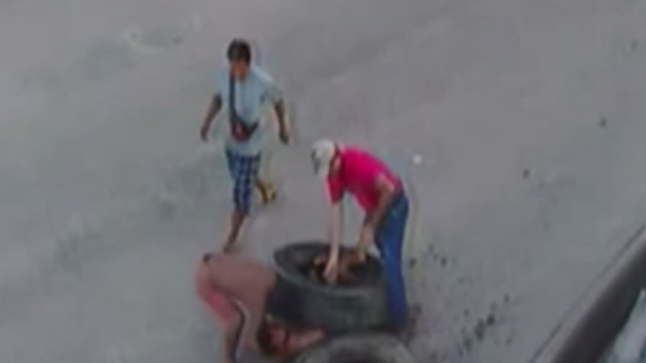 Viajaba metido en unos neumáticos pero un giro brusco del vehículo lo lanzó al suelo