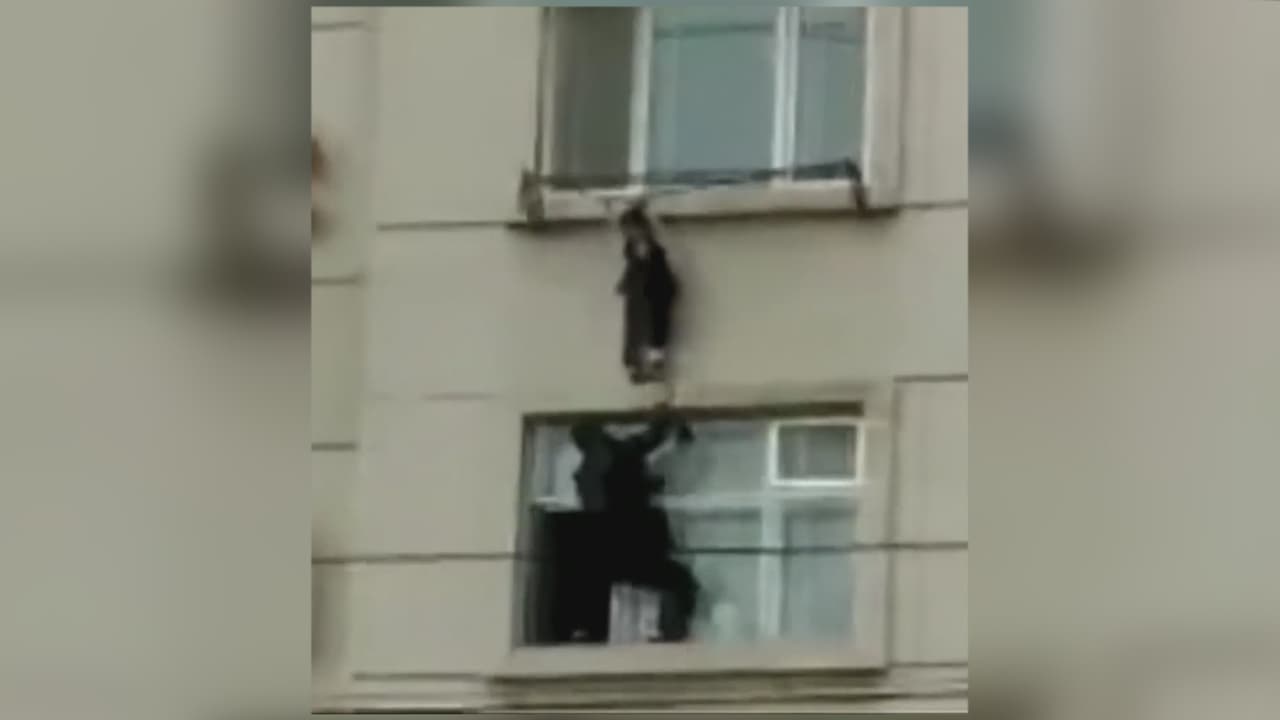 El increíble rescate de una niña que colgaba de una ventana en un cuarto piso
