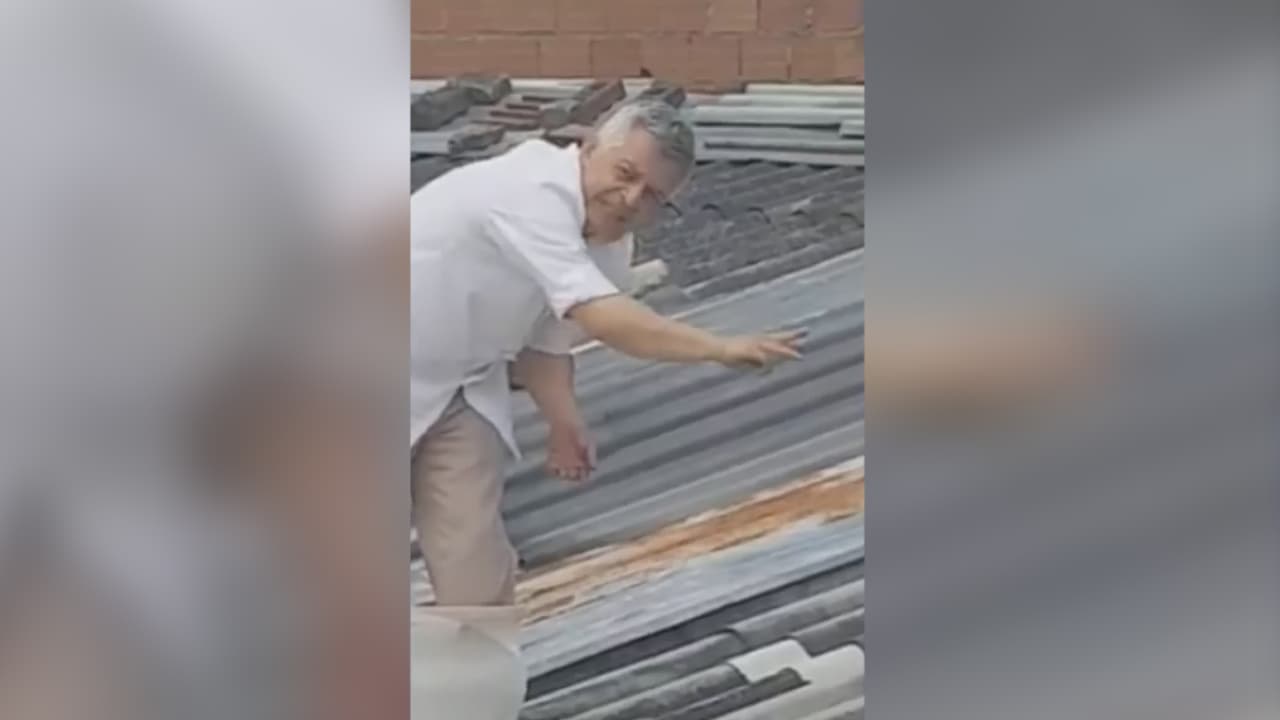 Las imágenes muestran al sujeto en el techo de su casa mientras los vecinos le recriminan.