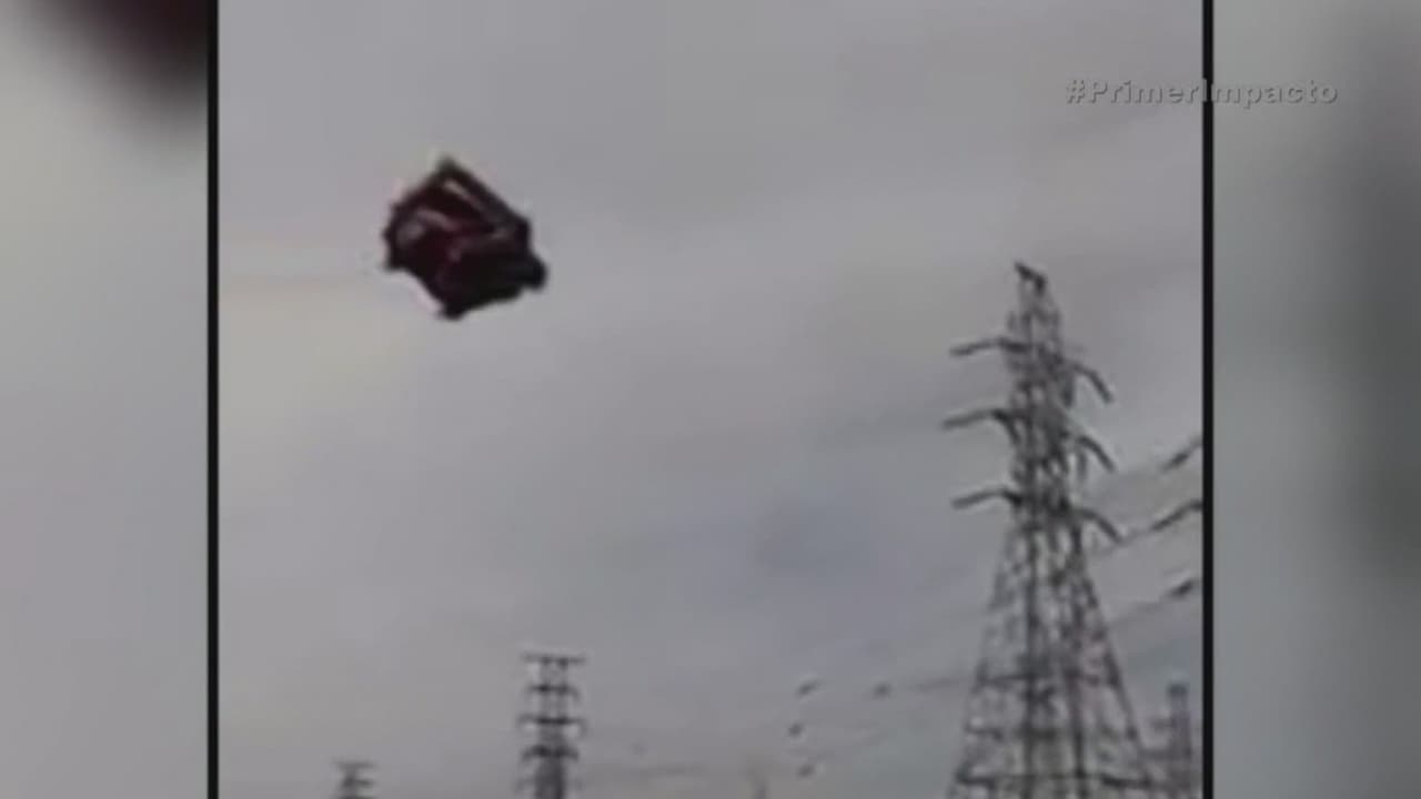 Viento levanta casa inflable que se estrella contra cables eléctricos