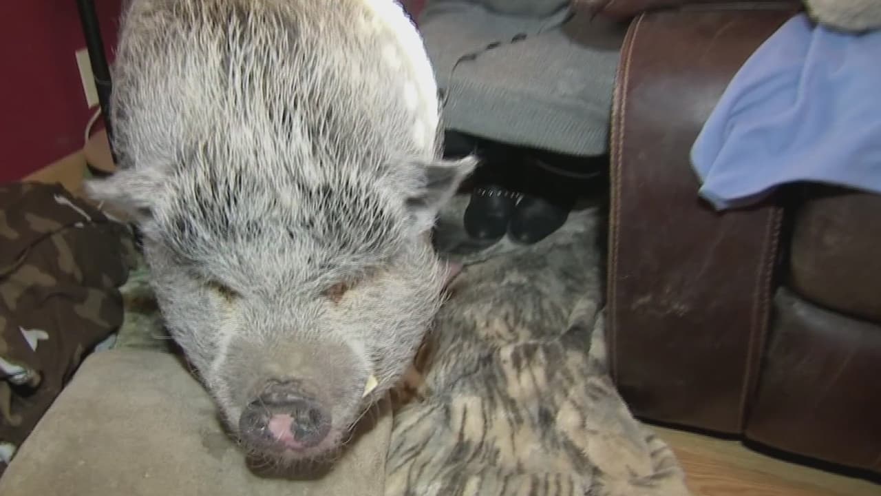 Las autoridades quieren separar al puerco de su dueña porque en estado no se permite que los cerdos sean animales de compañía. Su dueña lo quiere como si fuera un hijo y dice que hasta le sirve de terapia a su padre enfermo de cáncer.