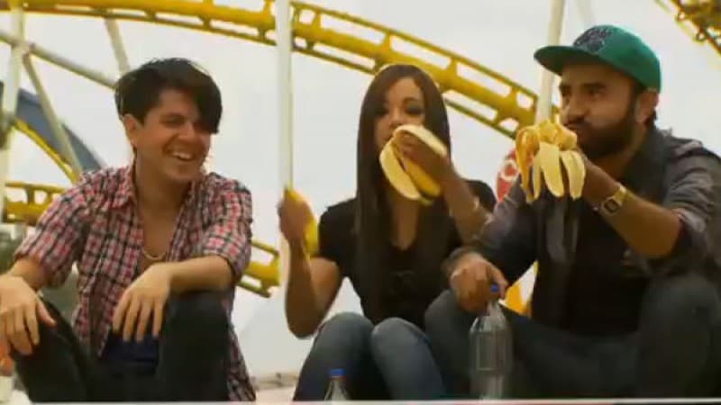 Los chicos de la banda 'Allison' cumplieron su primer reto: comer un par de plátanos y después subirse a un juego mecánico... sin vomitar.