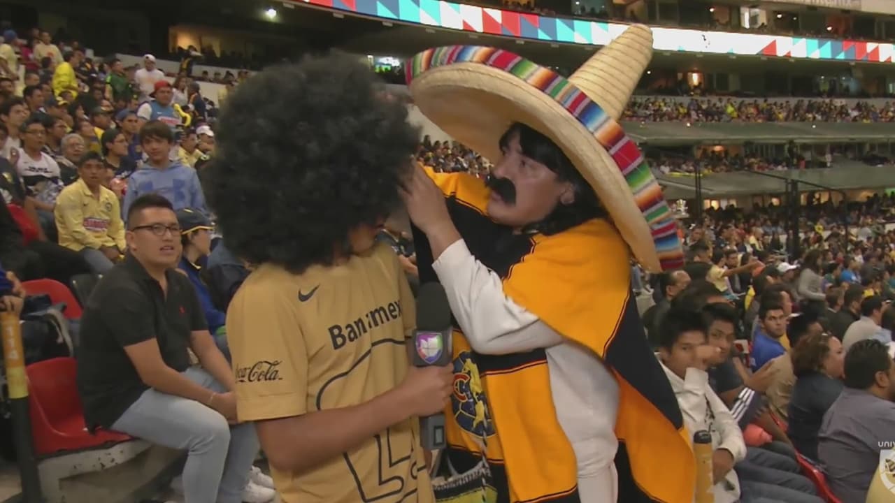 En el clásico capitalino del Azteca, Kevin Arnulfo disfrutó con los goles de las Águilas y hasta le escarbó la cabeza a un hincha de Pumas buscando a su 'Piojo'.