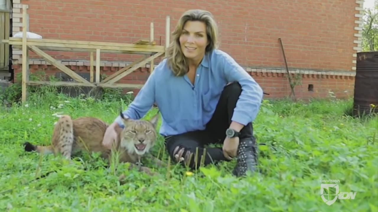 La presentadora viajó 45 kilómetros al sudeste de Moscú para conocer a Alicia, un lince boreal europeo que está en peligro de extinción. Aunque el animal en su hábitat natural es salvaje, su dueña lo domesticó.