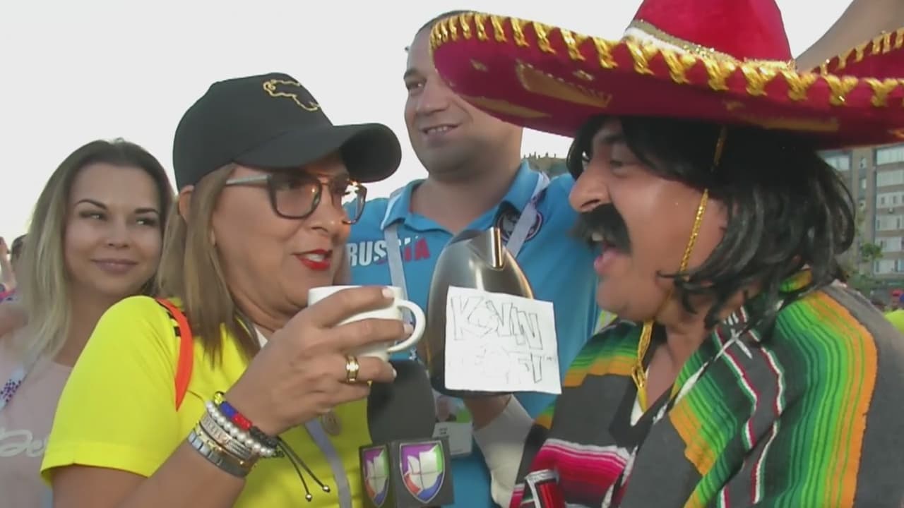 A nuestro enviado especial no le fue muy bien promocionando su 'Kevin's Coffee' con los hinchas de Colombia. Además, se atrevió a mostrar sus dotes bailando salsa.