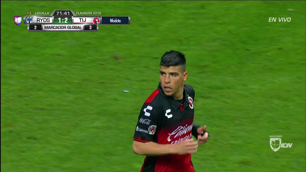 El 'Quick' Mendoza tuvo el tercero para Xolos, pero cruzó demasiado su disparo