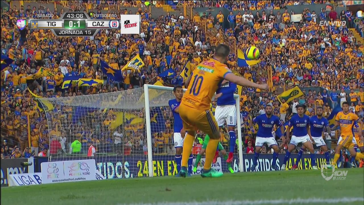 Instantes después del gol de Cruz Azul, Tigres estuvo cerca del empate gracias a un tiro libre que el francés puso en el metal.