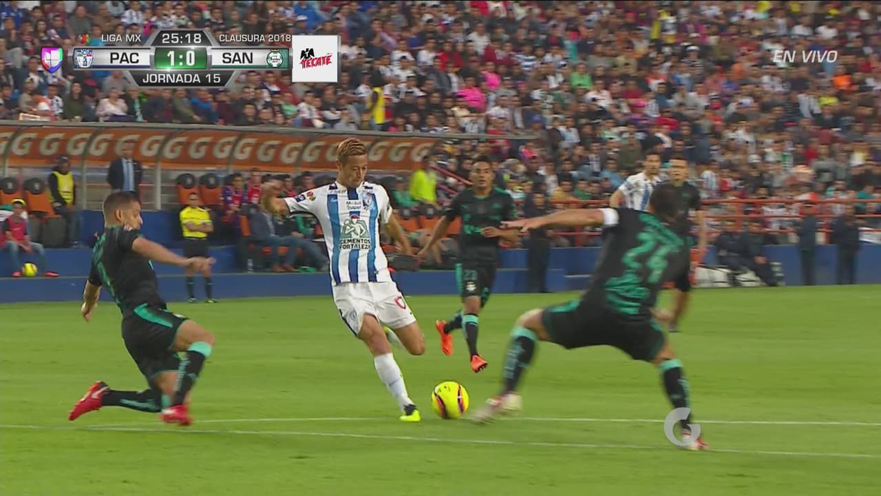 El japonés del Pachuca puso el primer gol del partido después de un recorte y un zurdazo que dejó parado al arquero Jonathan Orozco.