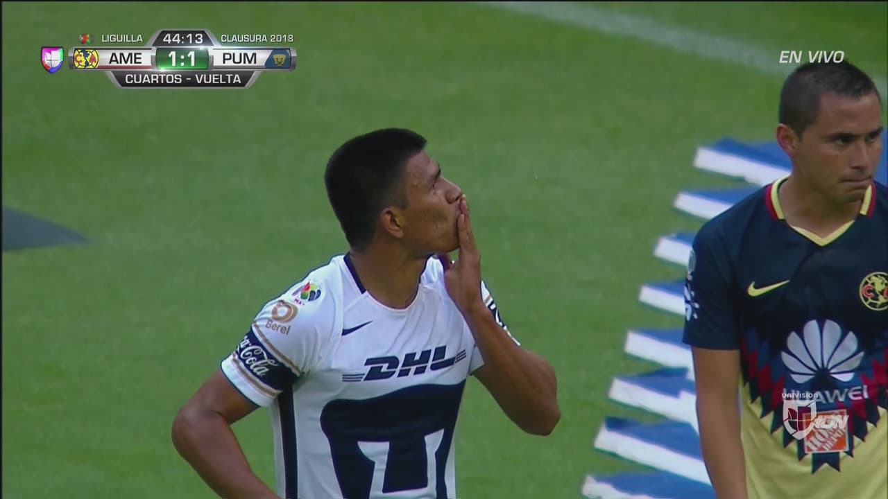 Lo mejor que Pumas ha hecho en la serie. Jesús Gallardo se quitó a dos defensas y cruzó a Agustín Marchesín. El partido se pone 1-1, pero América aventaja el global 5-2.