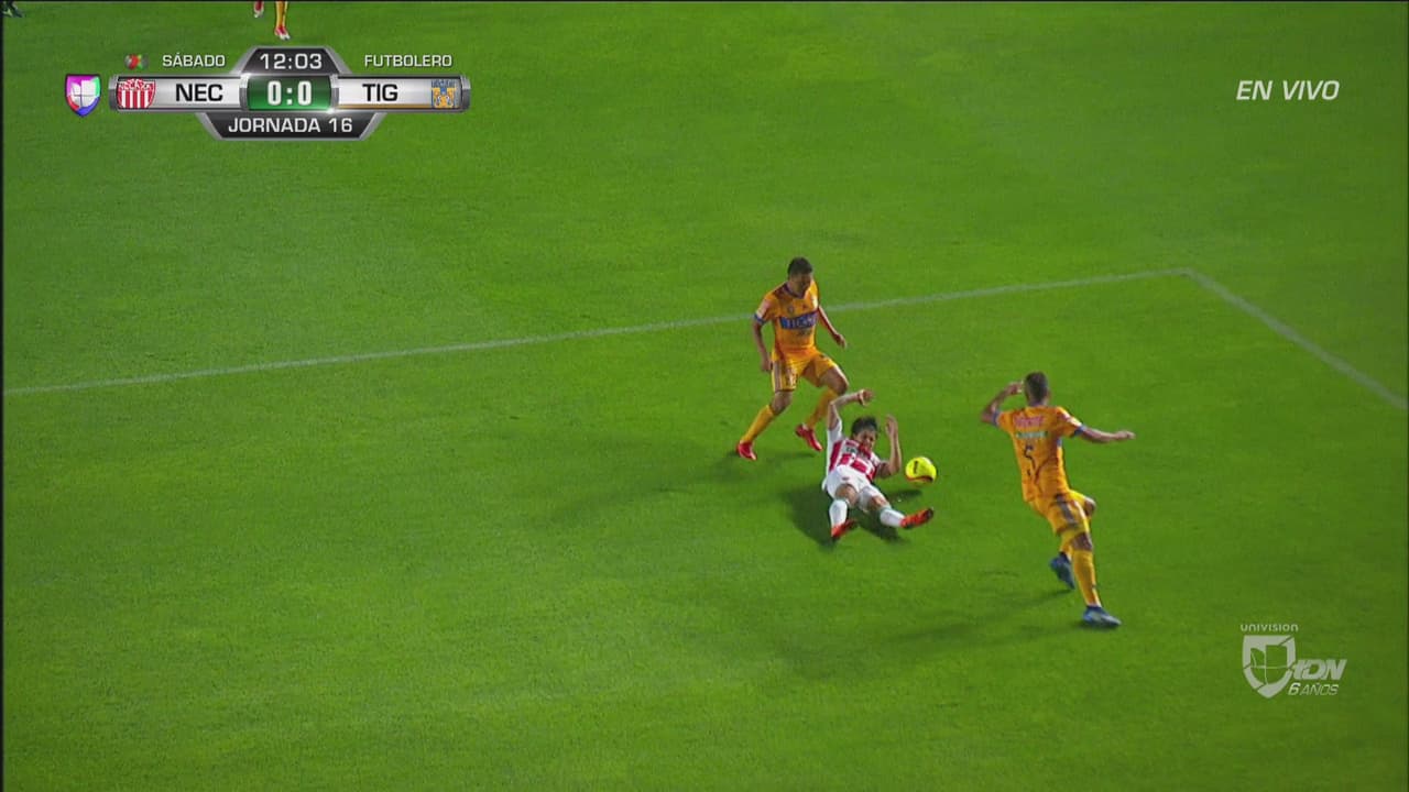 El jugador de Tigres tiró al de los Rayos en lo que parecía un empujón en el área de Tigres.