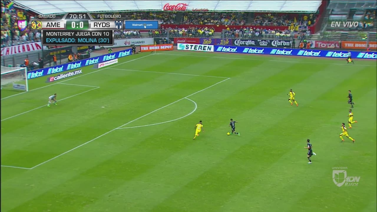 El volante de Rayados se enfilaba a la portería azulcrema pero el balón se le quedó atrás y se perdió una gran opción de gol.