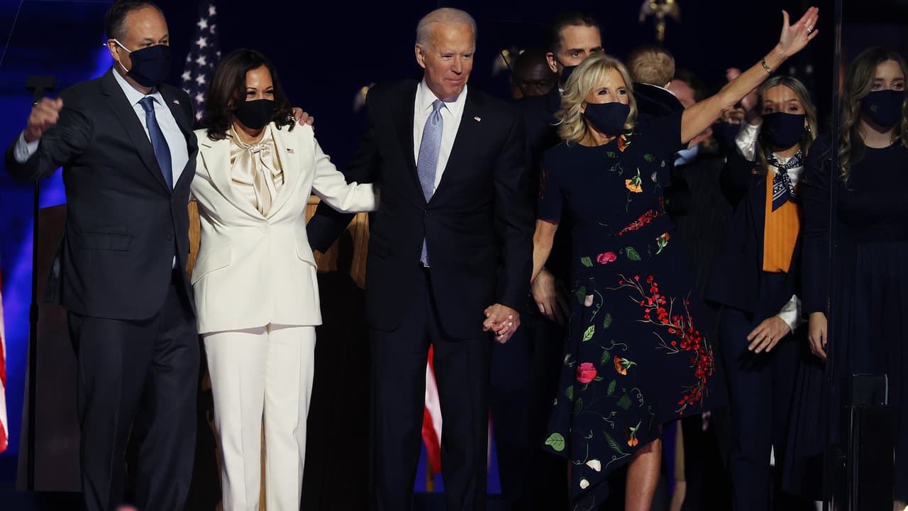Kamala Harris y Jill Biden fueron vestidas por diseñadores latinos la noche del triunfo de Joe Biden