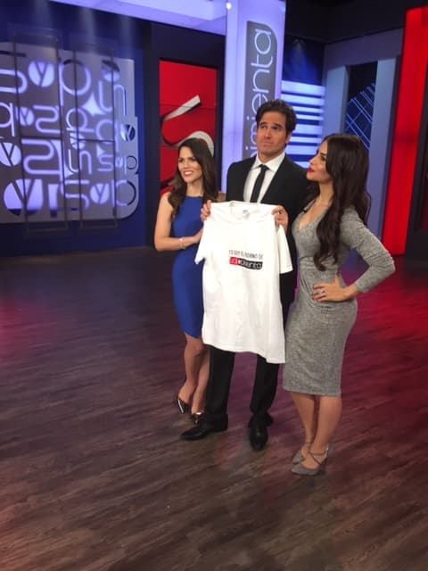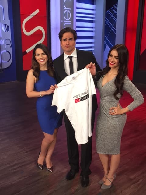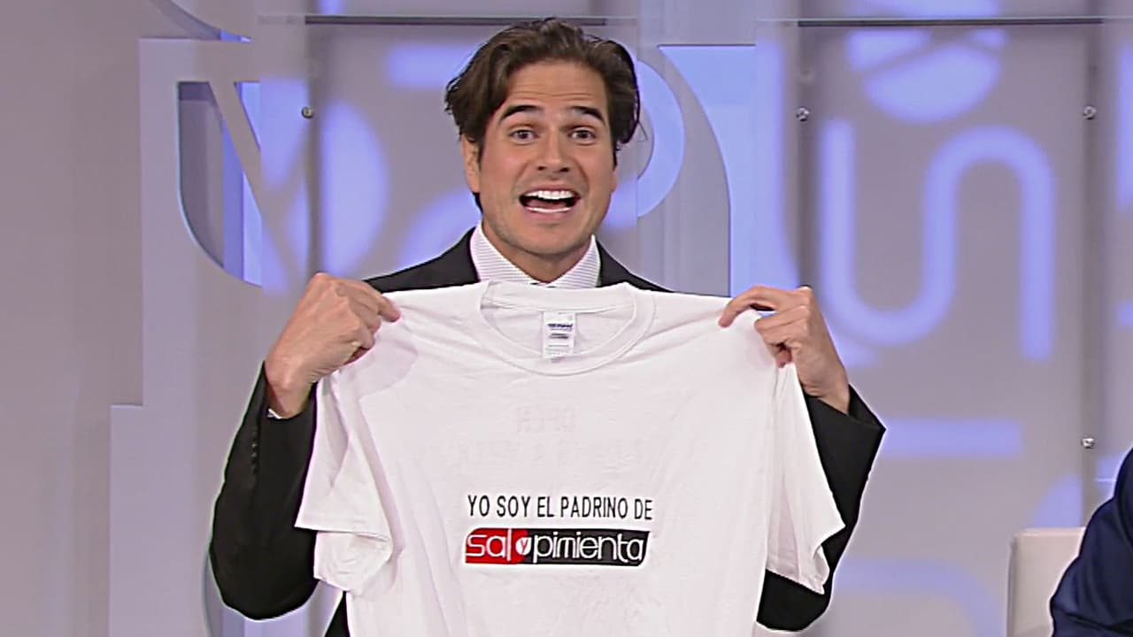 Al final del programa, el actor tuvo un pequeño detalle por parte de las conductoras: una playera con la leyenda ‘Yo soy el padrino de Sal y Pimienta’, ¿qué tal?