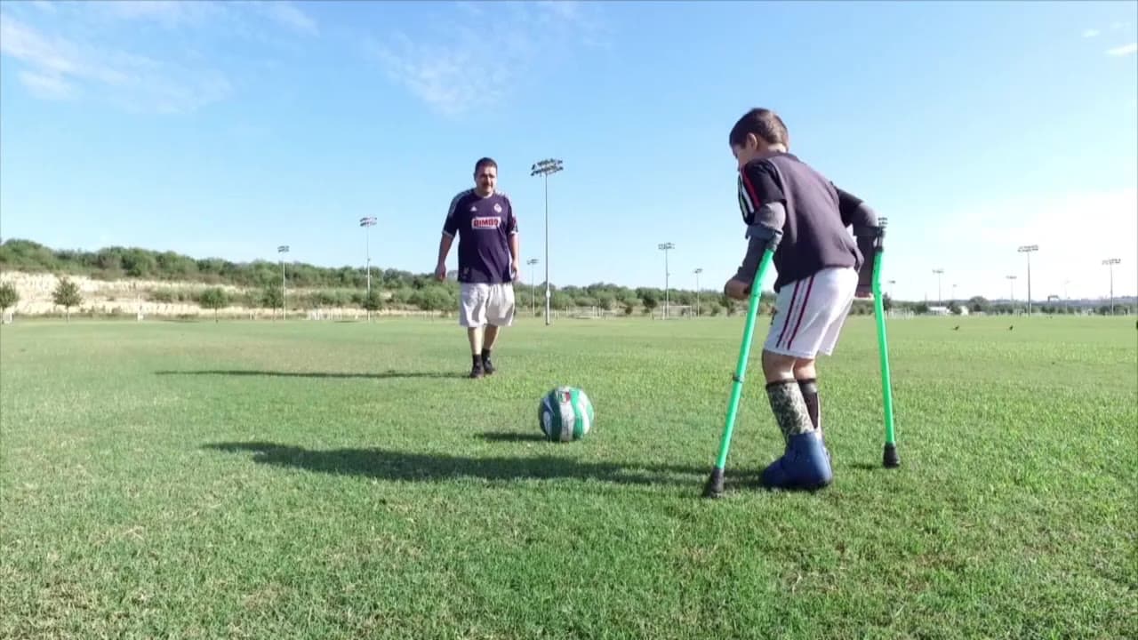 Gracias a la ayuda del Teletón USA, los padres de Moisés Díaz pueden ver a su hijo por primera vez en una cancha de fútbol como su hijo anhelaba.