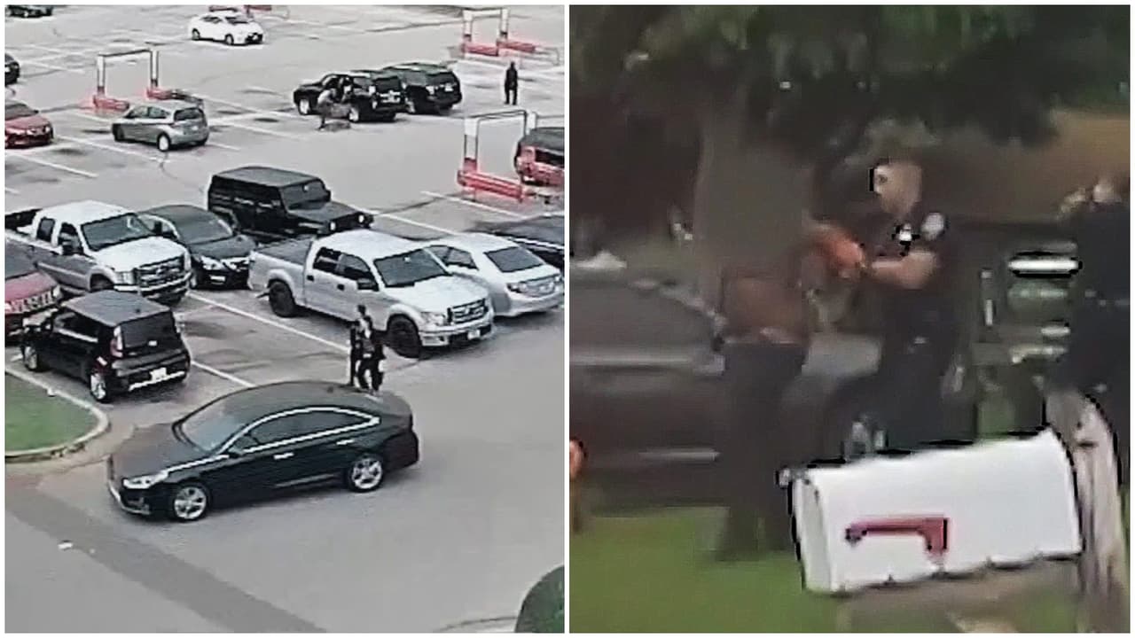Un video de seguridad muestra el momento en que un joven drogado ataca sin motivo alguno a una mujer y su pequeño de un año. El adolescente continúa con su ataque violento y más adelante es detenido por la policía.