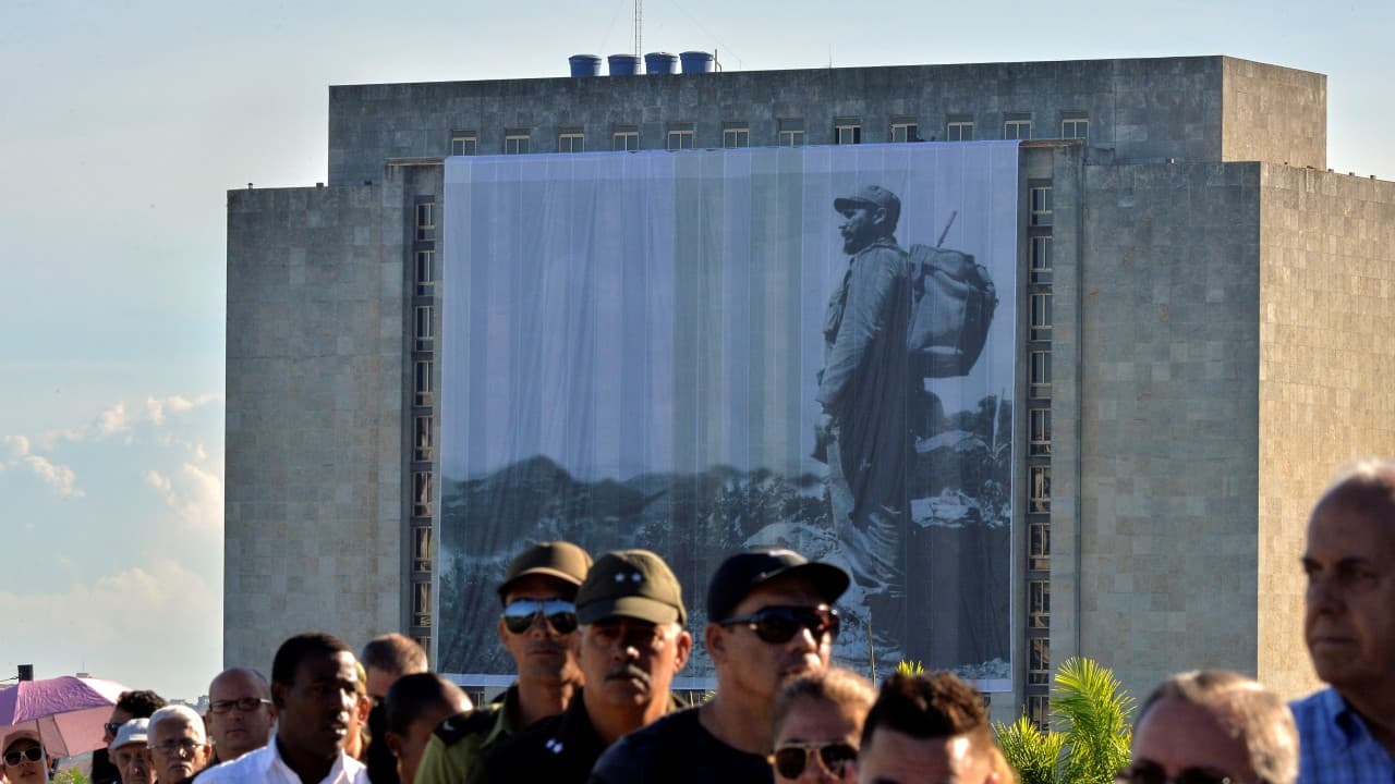 A giant picture of Fidel Castro is displayed at the 'Plaza de la Revolución'