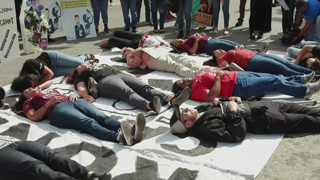 Protesters in Los Angeles descended on the offices of a company that manages migrant detention centers for the federal government. Juan Carlos Gonzalez joined the demonstrators as they tried to draw attention to the plight of people in custody.
