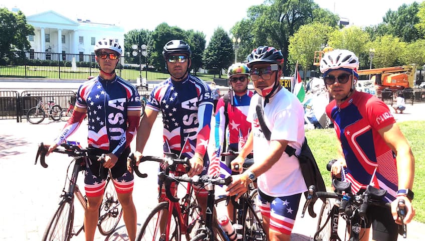 Carlos Lazo arrives in Washington, DC after cycling across the US