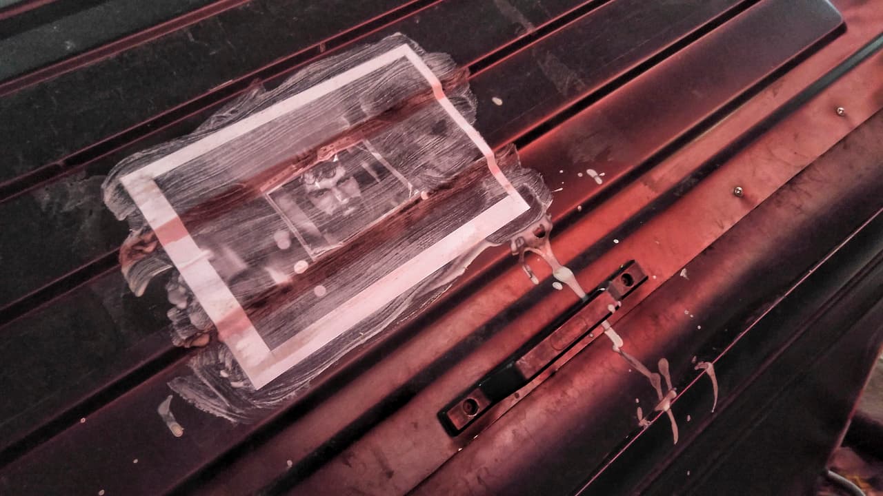 Santiago Maldonado reflected onto the Buenos Aires Cabildo.