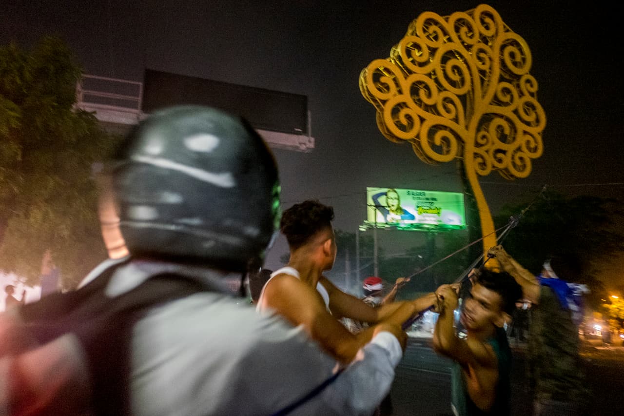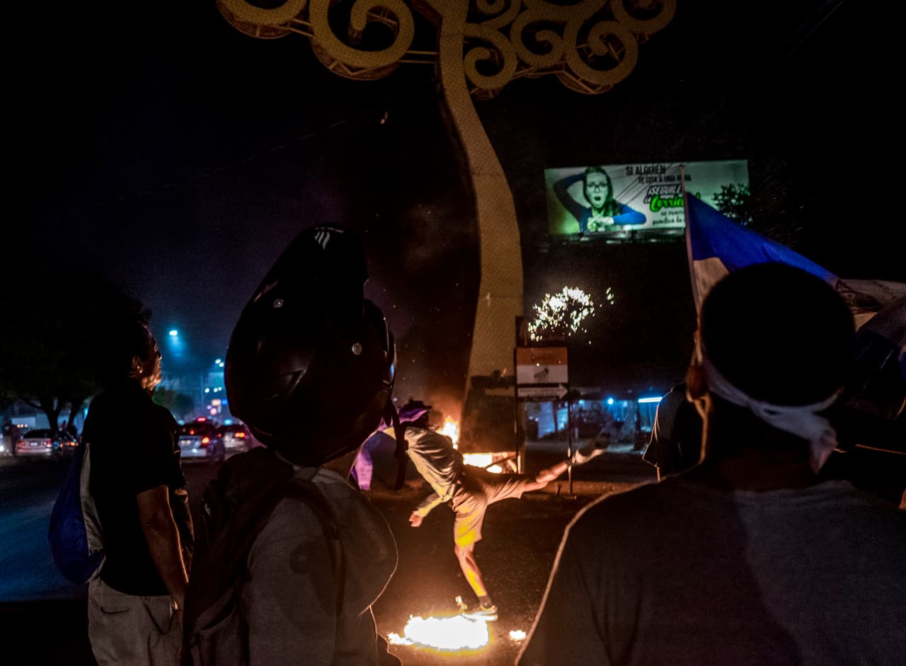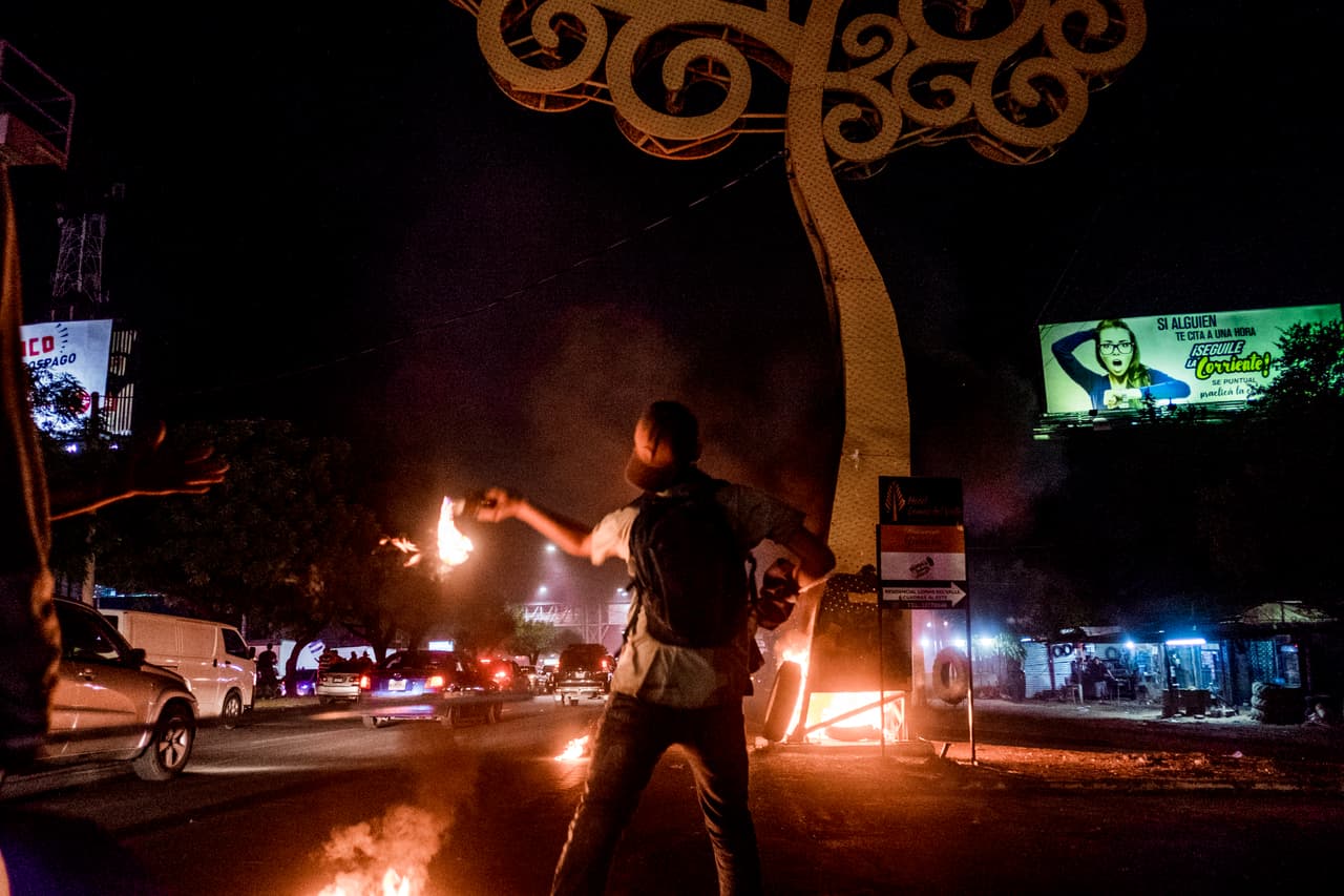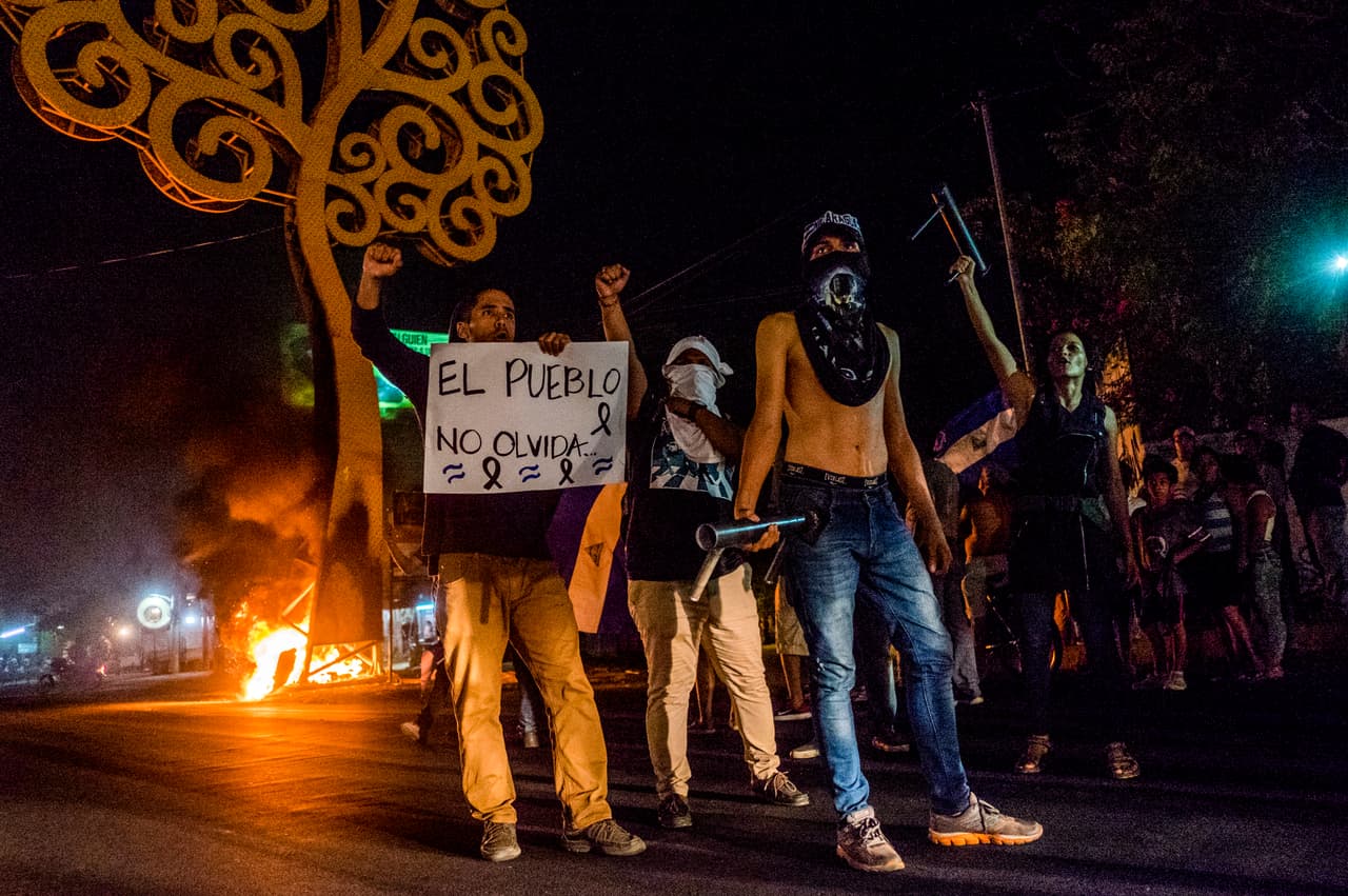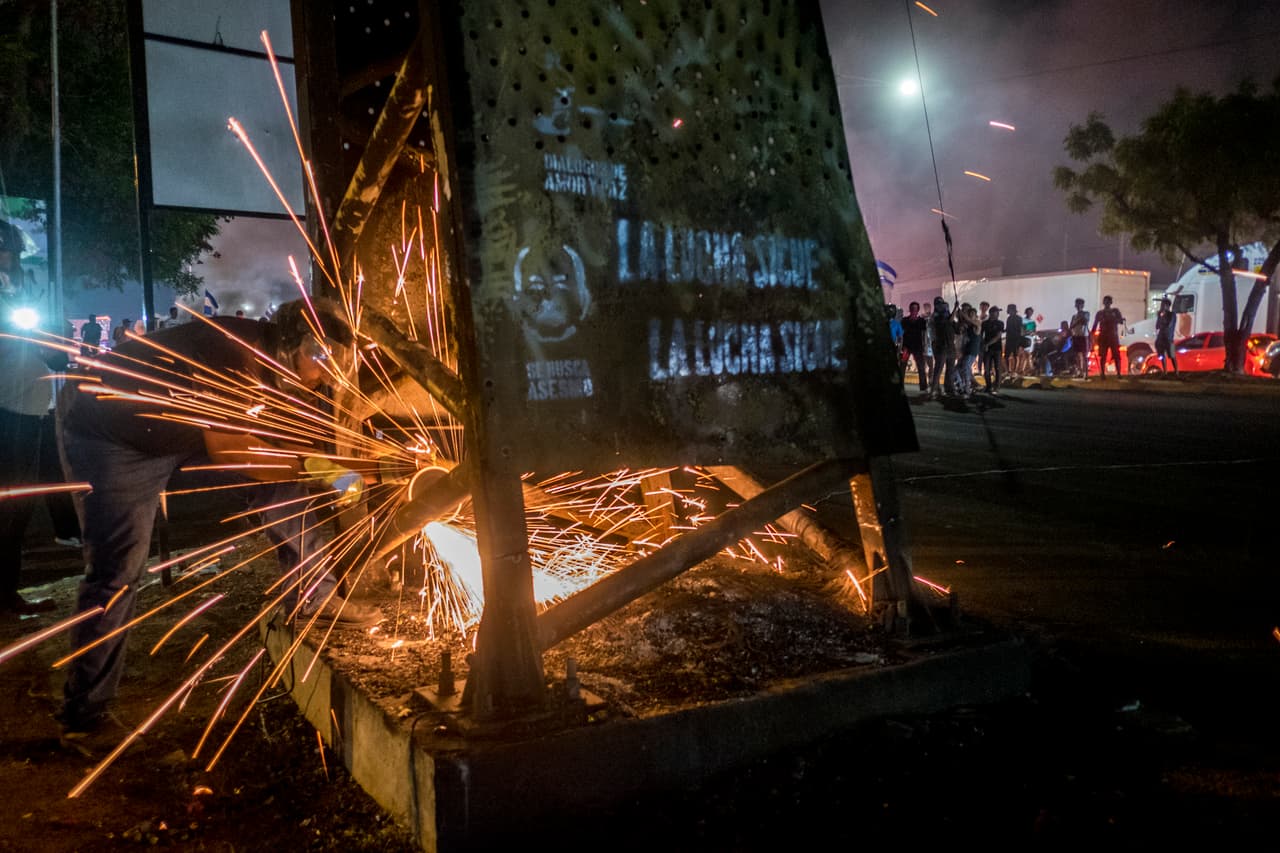 As the rejection of the government grows, the symbols that represent it are also coming down in the streets of Nicaragua. The red and black flags of the Sandinista Front (FSLN) have been replaced by the blue and white of the national flag. The demonstrators have also ripped up public images of the presidential couple: from giant-sized posters to the so-called 'trees of life', large and expensive metal structures that line some of the streets of the capital, a widely reviled initiative of Vice President Rosario Murillo.