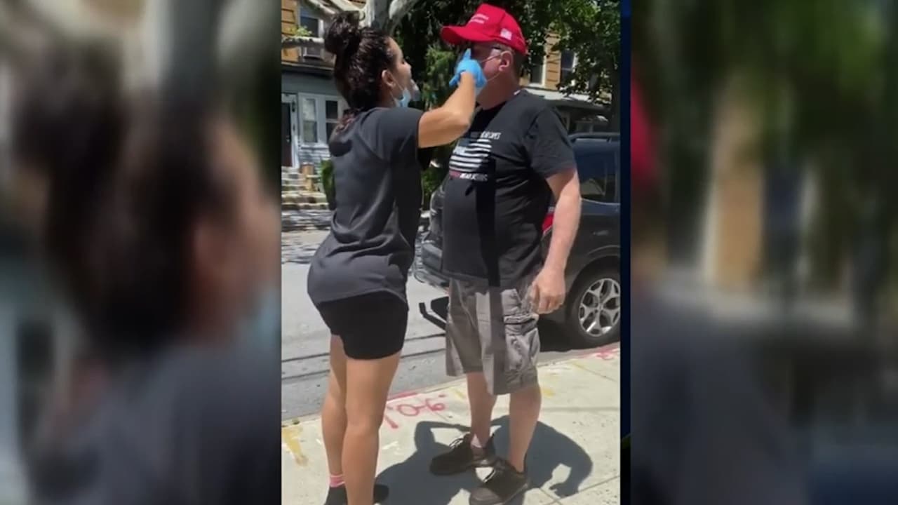 In New York, a pregnant Latina woman placed a 'Black Lives Matter' poster on her storefront window in solidarity with protesters. When a white man spat on it the confrontation was recorded on a cell phone.