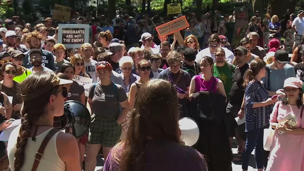 More than one hundred people were arrested this weekend in Manhattan, after a rally against the Trump administration's immigration policies. Giselle Robles has the details.