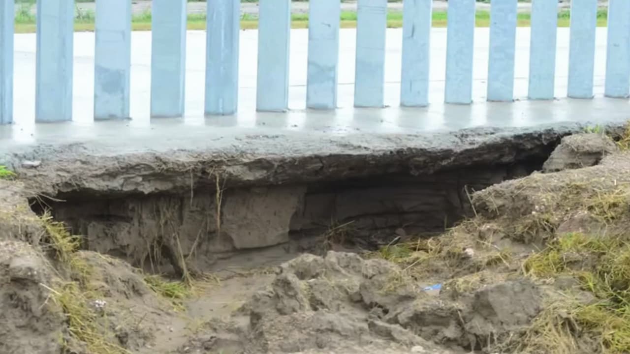 Along the dividing line between Texas and Mexico, a privately built border wall remains a controversial fixture in the community. A drone video shows evidence of erosion in some sections of the structure after being exposed to the wrath of Hurricane Hannah.