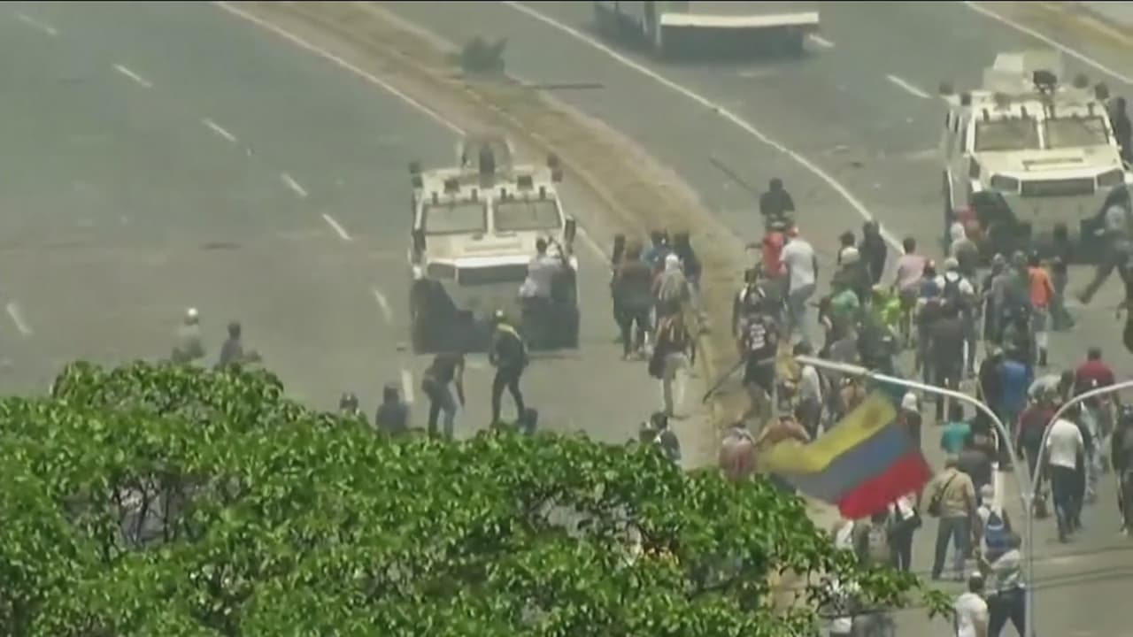 Clashes erupt in Venezuela after opposition leader Juan Guaido calls for military to obey the constitution abandon the "usurper' Maduro regime. Lorraine Caceres has the latest.